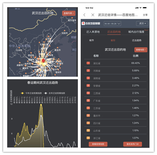 例如,百度地圖推出遷徙地圖總結(jié)描繪出了全國(guó)春運(yùn)人員遷徙熱力圖,包含來(lái)源地、目的地、遷徙規(guī)模指數(shù)、遷徙規(guī)模趨勢(shì)圖等,為各地疫情防控決策提供了大數(shù)據(jù)支持。