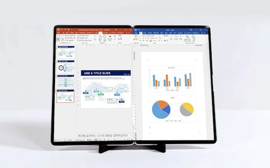 通過演示發現,目前折疊屏手機采用的兩面內折設計,很可能并不是智能手機的未來方向。反而,這一設計很可能會在未來的筆記本電腦、平板電腦中進行使用,例如可達17英寸的便攜折疊顯示器,或是上下皆為屏幕的筆記本電腦。