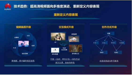 從發展趨勢看,高新視頻自身正在面臨著視頻畫質、創作方式、交互模式三個維度的升級,這三個維度重新定義了視頻內容表現。