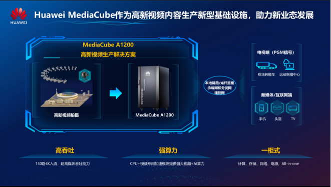 華為一直立足于成為視頻行業的技術使能者,希望助力新業態的持續發展。基于多年在硬件基礎設施、視頻領域專業技術積累,華為正式推出了MediaCube高新視頻生產解決方案,以提升高新視頻生產效率。