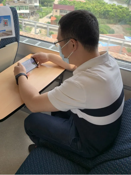 網銳公司員工出差途中在高鐵上觀看大會直播