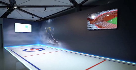 在英特爾北京2022年冬奧會體驗中心,英特爾更是將3DAT同樣帶到了冬奧賽事項目中,在現場搭設的迷你冰壺體驗場上,3DAT可以追逐體驗者投出的冰壺軌跡,產生相應數據。對于冰壺運動員而言,在日常訓練過程中,可以通過該系統給出的預設目標區域進行訓練,并能及時獲得冰壺的速度、軌跡等相關數據作為參考。