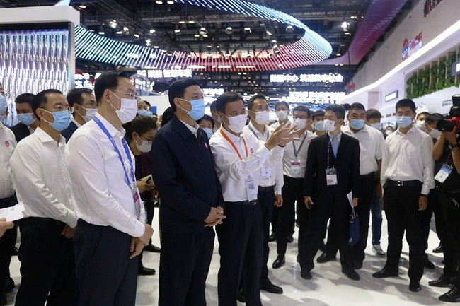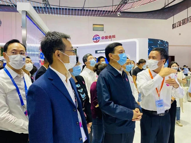 飛象網訊 9月29日,2021年中國國際信息通信展在北京如火如荼進行著,工業和信息化部黨組書記、部長肖亞慶一行蒞臨中國信科展臺,聽取集團光通信、5G、車聯網等技術研究成果及產業化應用情況匯報。