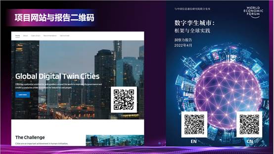 在發布環節,世界經濟論壇大中華區首席代表 Rebecca Ivey、中國信通院院長余曉暉、中國信通院規劃所總工程師高艷麗、世界經濟論壇物聯網與城市轉型平臺大中華區負責人徐亞敏共同發布《數字孿生城市框架與全球實踐(2021年)》(中英文)報告和“數字孿生城市”項目網站。(https://initiatives.weforum.org/digital-twin-city)