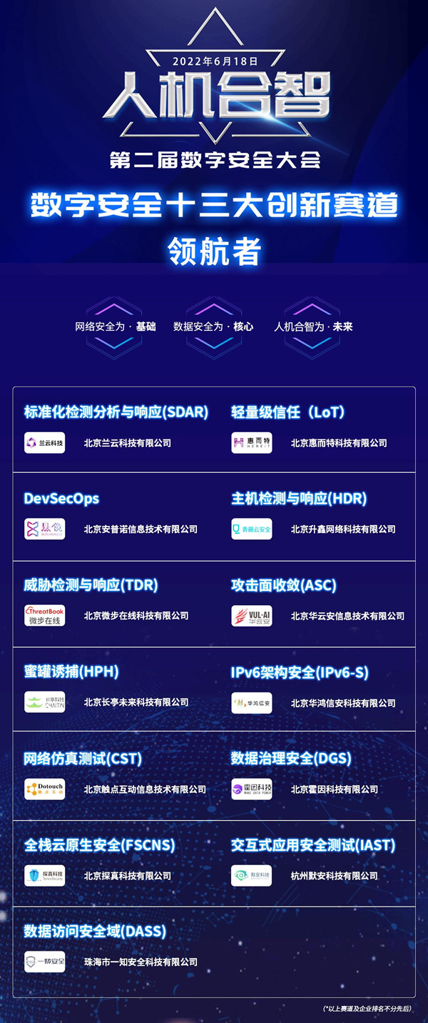 本次啟動會之后,第二屆數字安全大會的線下大會將于7月23日舉辦。會議以“人機合智”為主題,圍繞創新技術、理念和創新企業,設置了一個主論壇,3個分論壇,若干個用戶閉門沙龍,一個綜合展覽區。屆時,將發布更多的市場、技術報告,并將有眾多行業用戶、研究機構和業內專家現場參會。