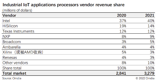 作為除汽車外的又一穩定細分增長領域,工業物理網應用處理器的競爭格局同樣值得關注。在該領域中,英特爾可謂一騎絕塵,這主要是由于開發人員通常需要基于 x86 的 Windows 或Linux,以避免復雜系統不兼容的風險。此外,海思、德州儀器、恩智浦、博通等都位居前列。欲了解該報告更多競爭格局情況,請聯系Fasiha(Fasiha.Khan@informa.com)詢問完整報告。