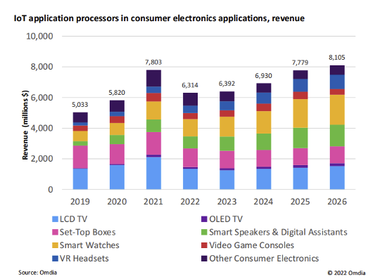 圖7. 消費電子應用中物聯網應用處理器收入分析