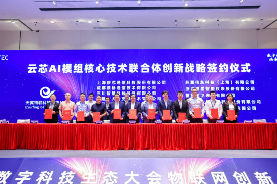 會上,天翼物聯還與多家產業合作伙伴達成云芯AI模組技術聯合創新戰略合作、綠色健康照明聯盟戰略合作。