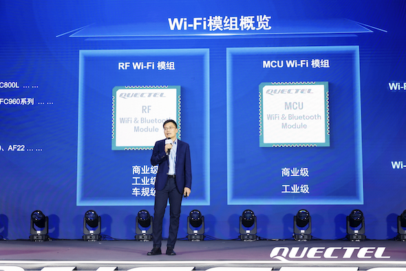 在Wi-Fi模組產品規格方面,移遠通信提供RF Wi-Fi、MCU Wi-Fi和車規級Wi-Fi。其中FGH100M系列作為首款Wi-Fi HaLow標準的模組,與網關搭配,可實現通過低頻進行廣覆蓋的能力。FGE57xQ系列則代表了Wi-Fi模組目前最高的規格,支持Wi-Fi 7標準,可滿足XR、筆記本電腦、網關類旗艦產品等應用需求。