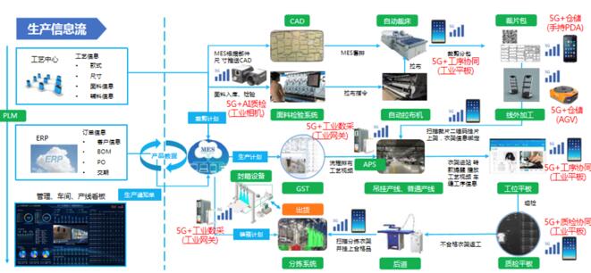 如同師傅在操控木偶時手握多根線絲的雙手,5G專網(wǎng)在將不同的數(shù)據(jù)向上匯總后,還需要對數(shù)據(jù)實現(xiàn)利用,并反之對具體的環(huán)節(jié)進行調(diào)控。聯(lián)通以5G專網(wǎng)為驅(qū)動,實現(xiàn)移動終端與平臺的有效協(xié)同。引入MES(制造執(zhí)行系統(tǒng))、APS(計劃與排程系統(tǒng))、GST(一般⻋縫時間)、PLM(產(chǎn)品生命周期管理)、WMS(倉庫管理系統(tǒng))、SCM(供應鏈管理)等多個模塊,與企業(yè)現(xiàn)有的 ERP(企業(yè)資源計劃)、EHR(人力資源管理信息化)、OA(辦公自動化)、 IPOS(終端零售客戶)等系統(tǒng)實現(xiàn)融通,構(gòu)建了以5G虛擬專網(wǎng)為核心的AI視覺檢測、工業(yè)數(shù)采、倉儲管理、硬件和工序協(xié)同等多個應用場景,實現(xiàn)企業(yè)產(chǎn)供銷一體化的有效協(xié)同。