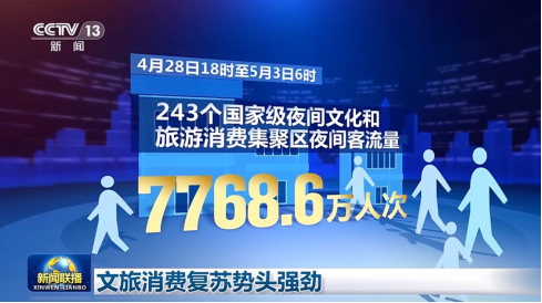 聯通大數據顯示,疫情后首個五一黃金周(4月28日18時至5月3日6時),243個國家級夜間文化和旅游消費集聚區夜間客流量7768.6萬人次,平均每個集聚區每夜6.39萬人次,較2022年同期增長114.5%。其中,南京秦淮河夫子廟片區、長沙五一商圈、西安城墻景區等多個集聚區“五一”假期累計夜間客流量均已超100萬人次。
