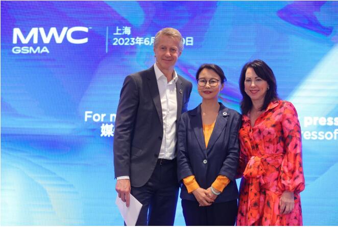 從左至右:GSMA會(huì)長(zhǎng)葛瑞德(Mats Granryd)、GSMA大中華區(qū)總裁斯寒、GSMA首席市場(chǎng)官Lara Dewar
