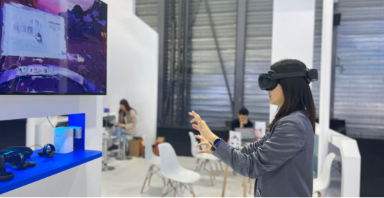 “戴上VR眼鏡,無需手柄,僅憑雙手即可完成點擊、拖拽、滑動等交互!痹浽诳苹眯≌f中出現的場景,正在2023 MWC上海玩出夢想YVR品牌展區真實上演,吸引參會觀眾駐足嘗試,并獲得好評。