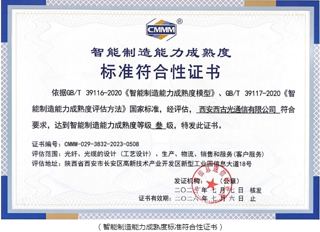 近日,西安西古光通信有限公司順利通過了國家智能制造能力成熟度評估(簡稱“CMMM評估”)專家復核,成為陜西省首批通過智能制造能力成熟度三級評估的企業。