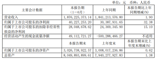 永鼎股份上半年營收18.76億元 同比增長1.9%