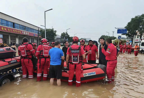 “水位太高了,周邊的百姓沒(méi)有地方避水,就來(lái)到了我們營(yíng)業(yè)廳里。”涿州市的大水突如其來(lái),許多周邊百姓進(jìn)入附近的聯(lián)通營(yíng)業(yè)廳內(nèi)避險(xiǎn),荷花路營(yíng)業(yè)廳也是“避風(fēng)港”之一。不料7月31日當(dāng)晚,大水將荷花路營(yíng)業(yè)廳包圍,12名來(lái)避險(xiǎn)的周邊百姓和5名聯(lián)通員工被困在里面。附近的基站被大水淹泡,又加上斷電,廳內(nèi)聯(lián)通員工只能靠短信與公司同事取得聯(lián)系,河北聯(lián)通得到消息后立即組織救援組奔赴現(xiàn)場(chǎng)。由于水勢(shì)洶涌,地形復(fù)雜,救援難度和風(fēng)險(xiǎn)不斷增加,在多次嘗試失敗后,通過(guò)多方協(xié)調(diào),河北聯(lián)通與江蘇“獵鷹”救援隊(duì)組成聯(lián)合救援隊(duì)展開(kāi)救援工作。