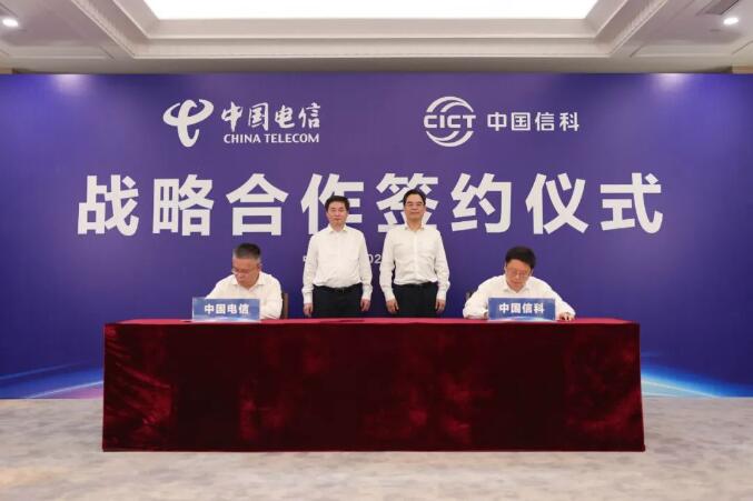 9 月 9 日上午,中國信科集團與中國電信集團在武漢舉行戰略合作協議簽署儀式。中國信科集團黨委書記、董事長魯國慶,中國電信集團公司黨組書記、董事長柯瑞文出席簽約儀式并講話。中國信科集團總經理辦公室主任丁峰與中國電信政企信息服務事業群總經理潘天舒代表雙方簽署戰略合作協議。