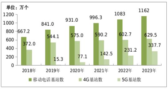 圖:2018-2023年移動電話基站發展情況