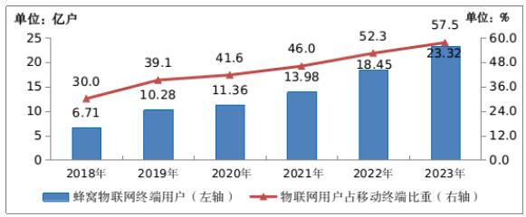 我國蜂窩物聯網用戶已有23.32億戶 占移動網終端連接數比重達57.5%