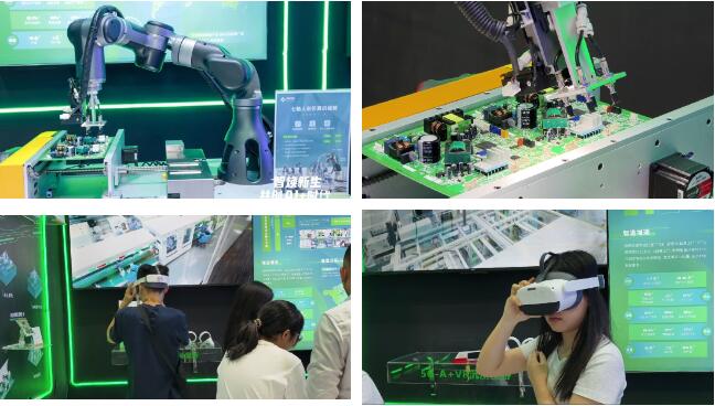 其中,微網(wǎng)優(yōu)聯(lián)自主研發(fā)設(shè)計(jì)的七軸人形仿真機(jī)械臂成為了展位焦點(diǎn)。"快來(lái)和我打個(gè)招呼吧!"精彩有趣的程序充分展現(xiàn)了機(jī)械臂的靈活、精準(zhǔn)。更有5G-A+VR沉浸漫游遠(yuǎn)在成都的智慧工廠(chǎng),實(shí)時(shí)體驗(yàn)工廠(chǎng)內(nèi)高度自動(dòng)化、智能化的生產(chǎn)場(chǎng)景。其領(lǐng)先的大規(guī)模制造能力和數(shù)智化水平給現(xiàn)場(chǎng)嘉賓留下了深刻印象。