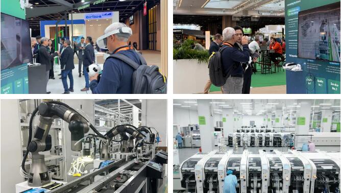 戴上VR設備,即可置身微網(wǎng)優(yōu)聯(lián)位于四川成都的Wi-Fi智能終端產業(yè)園之中。沿虛擬導覽的路線可深入了解智能生產線的運作機制,吸引無數(shù)客戶駐足互動體驗。在5G技術的賦能下,智慧工廠中的自動化設備有序地進行各項操作,特別是尖端SMT生產線與自研精密仿真人形機械臂讓每一位客戶深刻感受到了信息科技的震撼與魅力,并紛紛表示期待未來能夠實地參觀產業(yè)園。