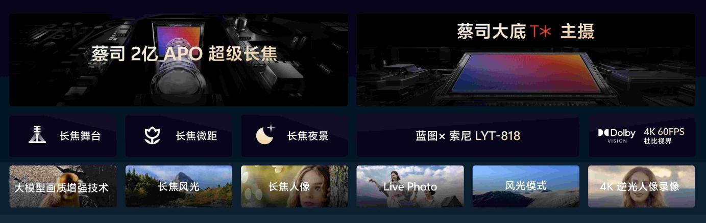 主攝拍照性能與1英寸傳感器相當,視頻性能超越1英寸標準。長焦方面,vivo X200 Pro配備蔡司2億APO超級長焦,支持20倍以上細節增強,改善長焦畫質。