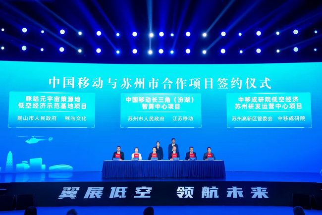 中國移動持續加大在蘇州的投資力度和能力布局,依托5G、AI等核心技術優勢,積極參與低空經濟產業聯盟,打造示范項目。開幕式上,中國移動與蘇州市政府完成了多個重量級項目的簽約:蘇州移動黨委書記、總經理沈巖與蘇州市政府副秘書長金曉虎共同上臺,正式簽約中國移動長三角(汾湖)智算中心項目;咪咕文化科技有限公司政企中心總經理孫翔云與昆山市市委常委、常務副市長張峰攜手簽約,宣布咪咕元宇宙策源地低空經濟示范基地落地昆山;中國移動(成都)產業研究院華東區域中心總經理艾光明與蘇州高新區黨工委委員、管委會副主任張瑛上臺,就中移成研院低空經濟蘇州研發運營中心項目達成合作,共促低空經濟技術創新與成果轉化。江蘇移動黨委書記、總經理李鋒與蘇州市委副書記、市長吳慶文作為重要嘉賓上臺見證。后期,中國移動在信創、6G通信、智能網聯等領域的多個運營基地也將陸續落地蘇州,深度打造移動云、5G-A 商務示范區樣板,推動產業創新與技術升級。移動云空地一體智慧園區項目也在博覽會上正式宣布開工,中移(蘇州)軟件技術有限公司副總經理孫少陵上臺參與了啟動儀式。