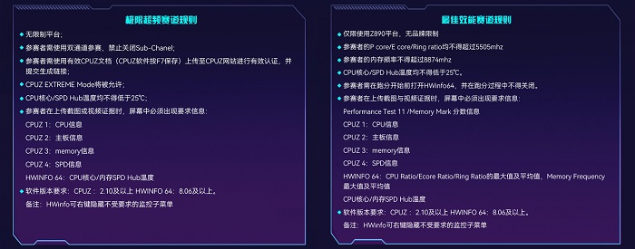 為了讓參賽選手能選擇更適合自己的方式,展示超頻調(diào)校技藝,這場超頻挑戰(zhàn)賽提供2個賽道可選:極限超頻賽道和最佳效能賽道。極限超頻賽道適用于新舊平臺用戶,專注于沖擊高頻,挑戰(zhàn)頻率上限,回歸內(nèi)存超頻最本質(zhì)的比拼。而最佳效能賽道則限定在Z890平臺,探討Intel新平臺最佳效能的釋放路徑,追求更快更強的性能。