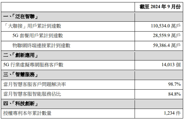 數據顯示,截至2024年9月份,中國聯通“大聯接”用戶累計達11.0534億戶,物聯網終端連接累計達5.93864億戶,5G行業虛擬專網服務客戶數達14013個,當月智慧客服服務問題解決率達98.7%,當月智慧客服智能服務占比達84.8%,授權專利本年累計數量達1234件。