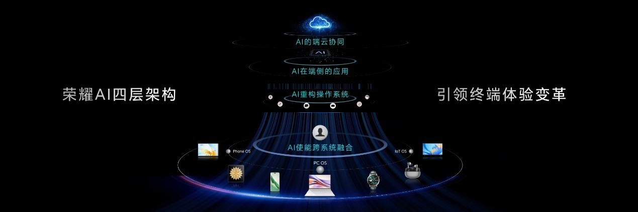 早在2016年,榮耀便以前瞻性的布局,從系統底層開始構建全面的AI技術優勢。從第一代榮耀Magic系列智能手機搭載榮耀Magic Live智慧引擎,到2018年榮耀Magic第二代啟用自進化、自學習的智慧生命體YOYO,再到2022年底發布AI使能的個人化全場景操作系統MagicOS 7.0,榮耀在AI技術的探索上從未停歇。2023年,榮耀更是首次提出將AI大模型引入端側,進一步推動了AI技術在智能手機領域的應用。2024年,榮耀首次提出AI的四層架構,為智能終端的發展提供了清晰的路徑。如今,隨著榮耀Magic7系列的發布,榮耀YOYO智能體再次實現了端側AI的創新疊加效應和用戶體驗增值,標志著智能手機行業正式邁入智能體時代。