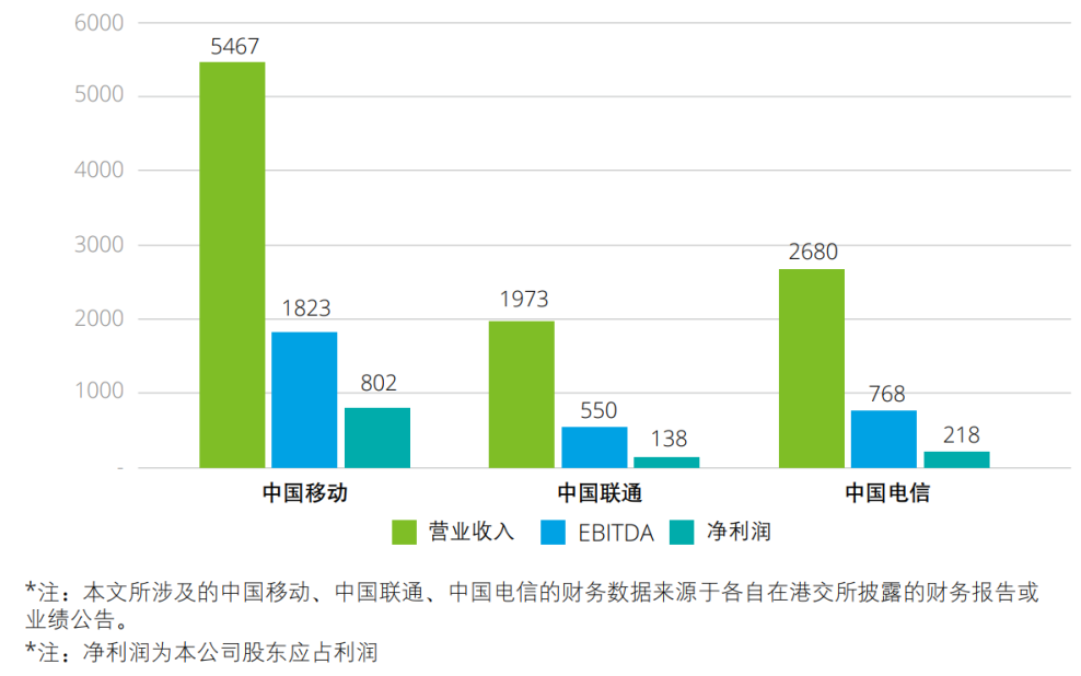 圖:三大運營商2024年1-6月財務數據*比較(單位:人民幣億元)