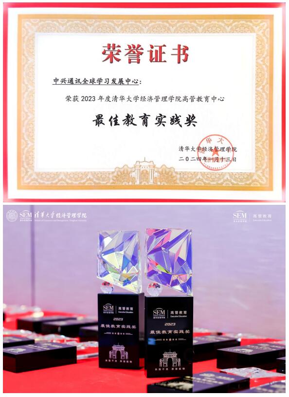 近年來,中興通訊與清華大學經濟管理學院也開展了多維度、深層次的合作,中興通訊也受邀為清華大學經濟管理學院的企業家學員們授課,分享中興理念。中興通訊全球學習發展中心也在2024年初獲得了清華大學經濟管理學院高管教育中心頒發的最佳教育實踐獎殊榮。