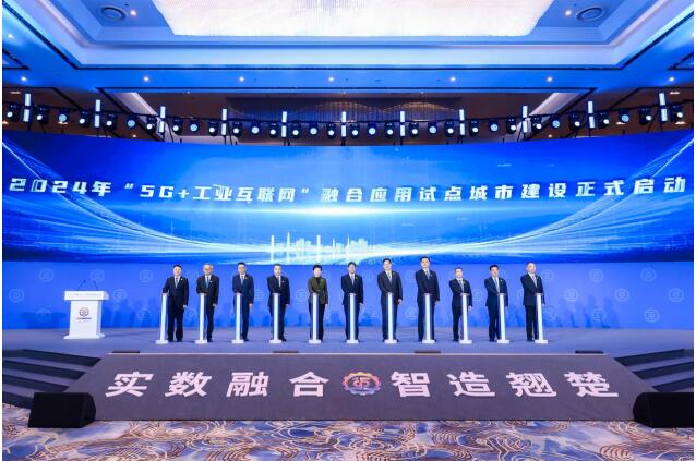 工業和信息化部黨組成員、副部長張云明與武漢市委副書記、市長盛閱春,南京市副市長蔣敏,青島市委常委、副市長、青島高新區工委書記王波,深圳市政府副秘書長張晉周,蘇州市政府副秘書長吳旭翔,上海市經信委副主任張宏韜,寧波市副市長李關定,廣州市政府副秘書長馬曙,沈陽市副市長李剛,成都市副市長、武侯區委書記許興國等10大試點城市代表共同啟動了2024年“5G+工業互聯網”融合應用試點城市建設。