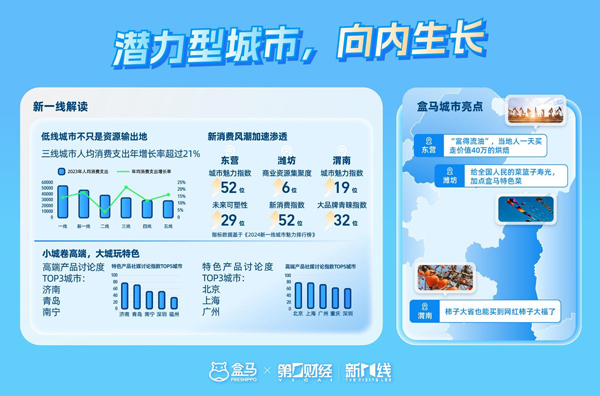 飛象網(wǎng)訊 2024年新品牌進(jìn)入了哪些消費(fèi)力強(qiáng)勁的潛力型城市?港人最喜歡“北上”買啥?三線城市如何利用“反向虹吸效應(yīng)”逆襲……春節(jié)將近,盒馬聯(lián)合第一財(cái)經(jīng)·新一線城市研究所共同發(fā)布了《2024盒區(qū)房消費(fèi)趨勢(shì)洞察報(bào)告》(下簡(jiǎn)稱《報(bào)告》),基于盒馬在全國(guó)近50個(gè)城市的消費(fèi)數(shù)據(jù),洞察不同城市間的消費(fèi)趨勢(shì)變化。