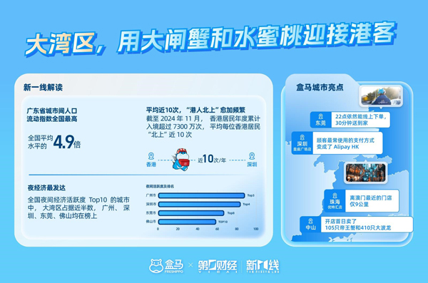 《報(bào)告》顯示,今年1到11月,香港居民入境超過(guò)7300萬(wàn)人次,相當(dāng)于平均每位香港居民“北上”近10次。水果、水產(chǎn)等時(shí)令食品是港人的心頭好。當(dāng)陽(yáng)山水蜜桃、陽(yáng)澄湖大閘蟹等特色時(shí)令生鮮上市時(shí),距離福田口岸最近的盒馬深圳皇庭廣場(chǎng)店都會(huì)迎來(lái)“跨境嘗鮮”的人潮,使用Alipay HK的用戶超過(guò)了其他方式的總和。