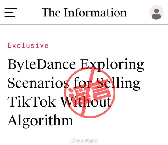 字節跳動25日晚發文稱:外媒有關字節跳動探索出售TikTok的消息不實,字節跳動沒有任何出售TikTok的計劃。