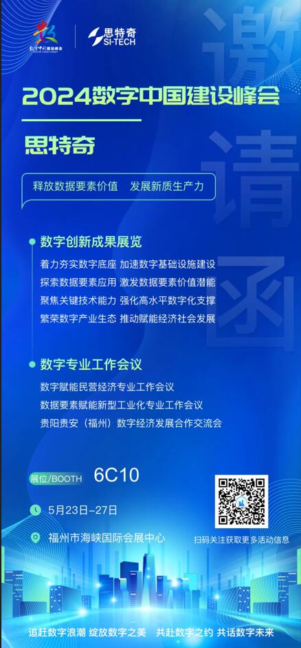 北京思特奇信息技術股份有限公司(簡稱:思特奇;股票代碼:300608.SZ)作為數字中國戰略的優秀踐行者和數字中國峰會的合作伙伴,始終堅持“引領數字經濟運營 助力數字中國建設”戰略目標,積極投身并推動數字中國建設發展。本屆數字中國建設峰會,思特奇將通過成果博覽會、專業工作會議及數字論壇等形式深度參與峰會。