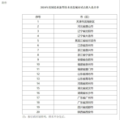 飛象網訊 近日,工信部公示2024年度制造業新型技術改造城市試點擬入選名單,共計20個,公示期為2024年4月29日-2024年5月9日。