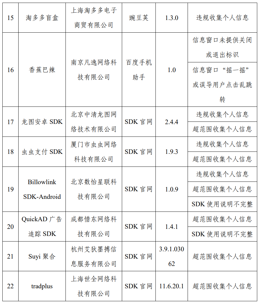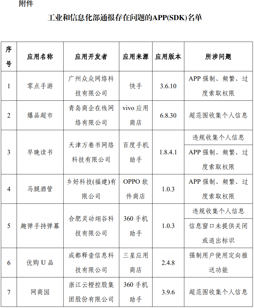 上述APP及SDK應按有關規定進行整改,整改落實不到位的,工信部將依法依規組織開展相關處置工作。
