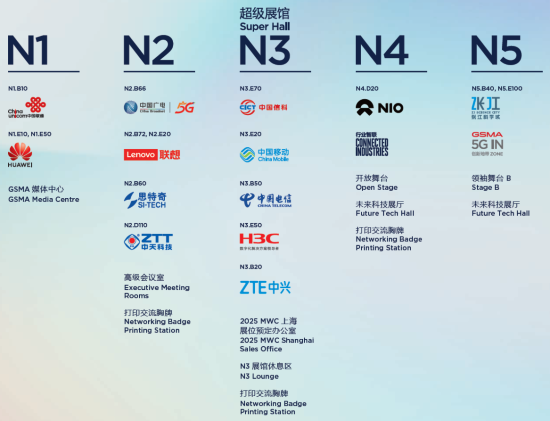 本屆展會共設五大展廳。其中最為大家熟知的超級展館位于N3展廳,中國移動、中國電信、中興通訊和GSMA展館均設于此。