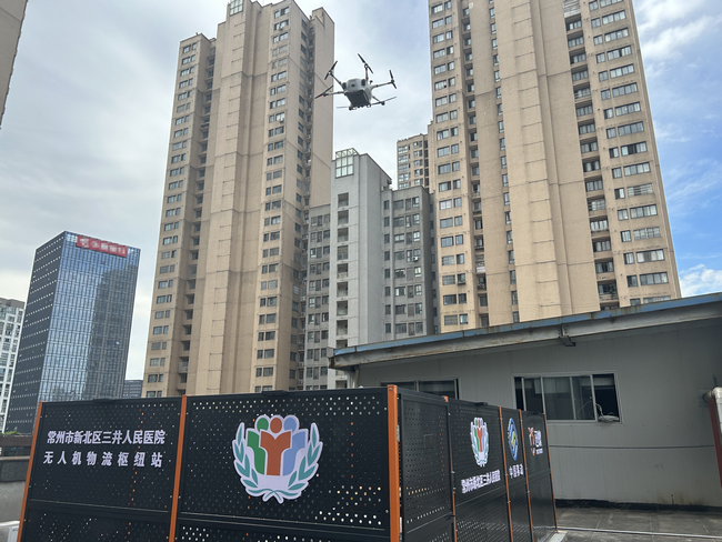 7月22日下午2點58分,一架載有醫療物資的無人機從常州市第一人民醫院(以下簡稱“一院”)起飛,按照設定的航線飛行7分鐘后,平穩降落在常州市新北區三井人民醫院(以下簡稱“三井醫院”)指定位置,完成了空中運輸任務。
