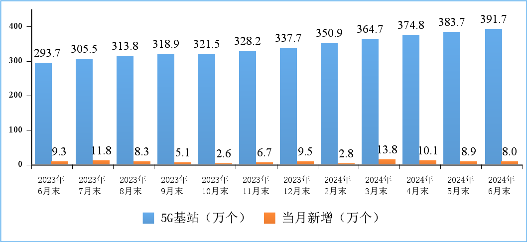 我國5G基站總數達391.7萬個 比上年末凈增54萬個