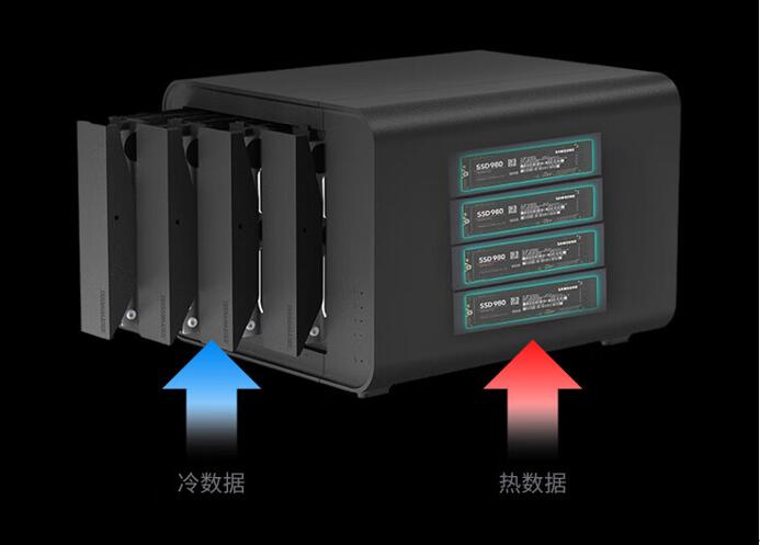 鐵威馬D8 Hybrid硬盤盒是一款集成了4+4盤位的直連存儲(DAS)產品,其最大的亮點在于能夠根據數據的冷熱特性進行智能存儲。所謂冷熱數據,是指那些經常被訪問的“熱”數據和長期不被訪問但需保留的“冷”數據。D8 Hybrid硬盤盒通過內置的智能管理系統,可以自動識別數據的訪問頻率,將熱數據存儲在高速、易訪問的存儲區域,而將冷數據遷移到成本更低、容量更大的存儲區域。