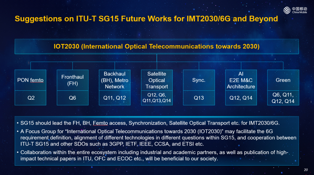 圖4:在ITU-T建立面向2030的光網絡大代際標準框架的倡議(摘自中國移動專家的報告)