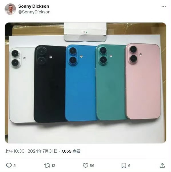 博主Sonny Dickson最新曝光了iPhone 16的機(jī)模,展示了新機(jī)的外觀和配色。