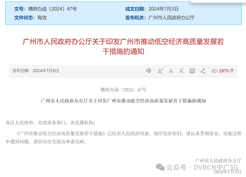 7月5日,廣州市人民政府印發的《廣州市推動低空經濟高質量發展若干措施》正式對外公布。