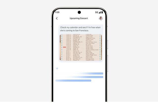 谷歌還舉例稱,通過即將推出的日歷擴展程序,用戶將能夠通過拍攝的音樂會傳單照片,讓Gemini查看自己是否有空去聽音樂會。如果根據已有的日程安排,用戶有時間去,還可以讓Gemini設置日歷提醒,在設定的時間點提醒用戶查看門票價格。