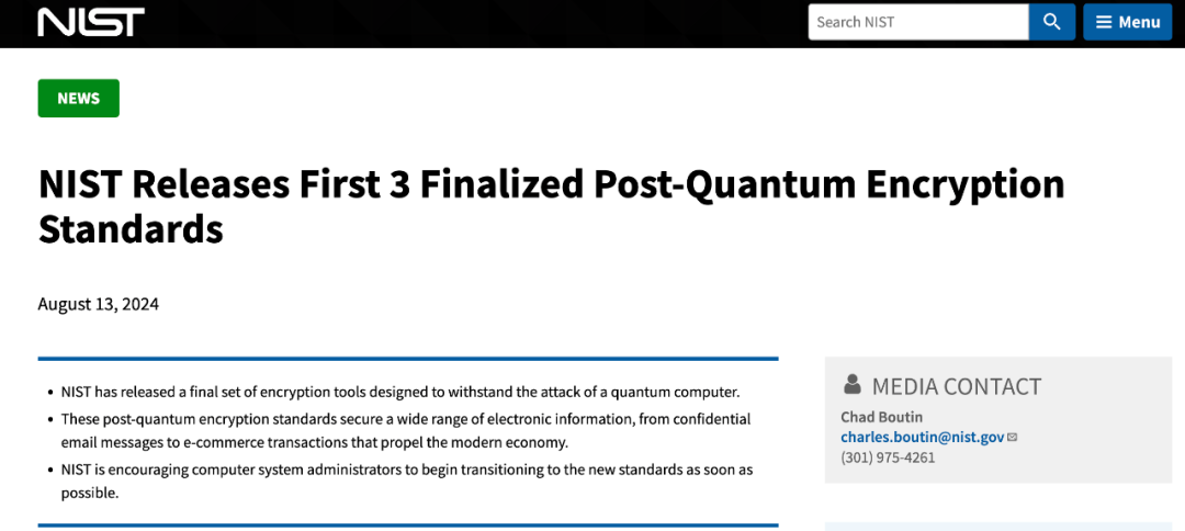 8月13日,美國商務部國家標準與技術研究院(NIST)最終確定了一套主要的加密算法,這套算法旨在抵御來自量子計算機的網絡攻擊。
