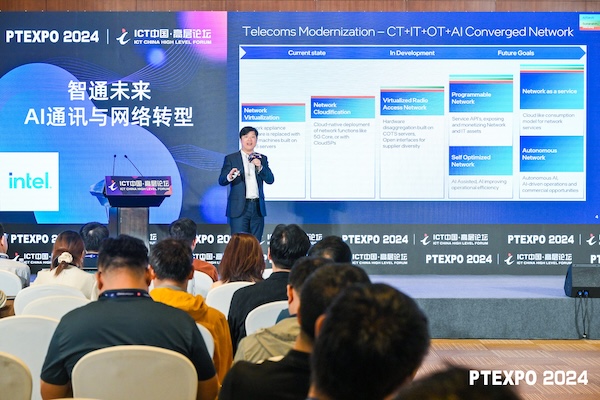 實際上,隨著多年的技術積累,在接入網側,也已經同樣具備了這樣的契機。以英特爾中國網絡與邊緣事業部網絡事業總經理阮伯超在2024通信展期間的主題演講中展示的這張PPT為例,呈現了電信網絡現代化的演進路徑,此前英特爾及合作伙伴已經實現了網絡虛擬化與云化,具備了進行云原生的網絡功能部署的能力。伴隨著持續不斷在vRAN上的努力,又實現了硬件的解耦合,讓軟件定義傳統通信網絡具備可能。