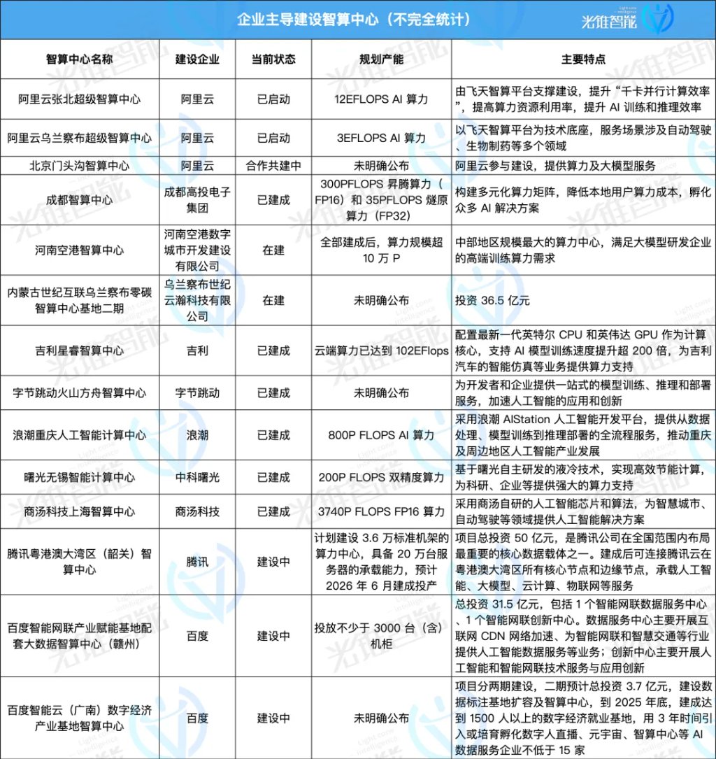 這其中既有政府主導(dǎo)建設(shè)項(xiàng)目,也有以阿里云、百度智能云、商湯等企業(yè)為主開始投資建設(shè)的智算中心,更有一些跨界企業(yè)看到其中的機(jī)會(huì)從而邁入這一賽道。